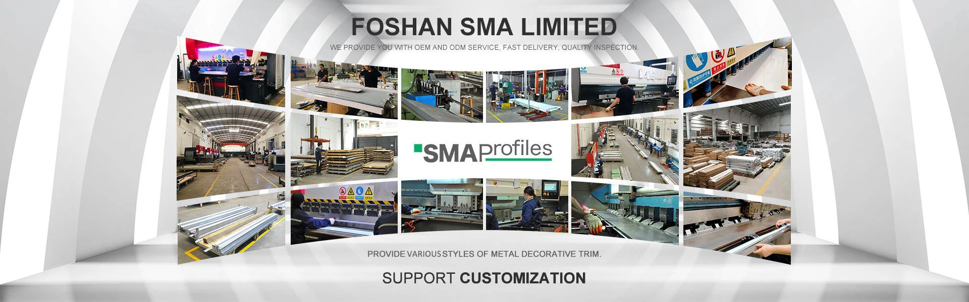 SMAは、あらゆるタイプのステンレス鋼プロファイル、アルミニウム装飾トリム、PVCエッジトリムなどを専門とするハードウェア製品の国際的な大手メーカーです。当社の工場は、約5,000平方メートルの面積、200人以上の従業員、および高度な生産設備をカバーしています。 さまざまなタイプのステンレス鋼トリムを製造するための7つの成形ラインがあります。 アルミプロファイルについては、金型設計、アルミプロファイル押出、加工、表面仕上げからパッキングまで、オールインワンの加工ラインを提供しています。 このようにして、すべてのステップから品質を管理することができました。 長年の操業を経て、豊富な生産・販売経験を積み、品質・価格に優れ、国内外の販売代理店やエンジニアリングクライアントと長期にわたる良好な協力関係を築いてきました。